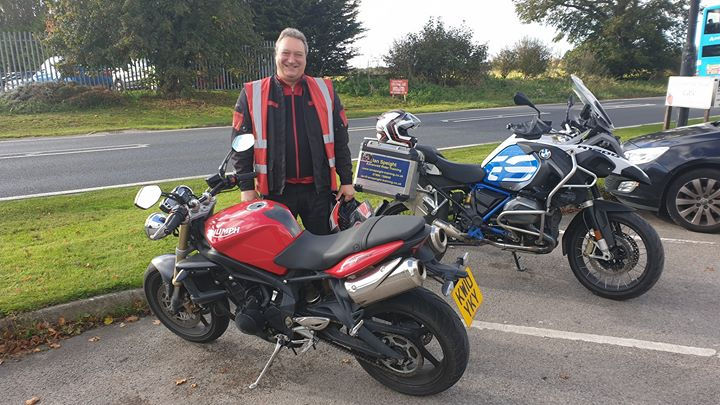 Away from training, I conducted five RoSPA bike tests, two of those were with RoSPA Group Tutors (Simon and Adam) who were taking their triannual re-tests and who both put in great rides to acheive Gold passes. The other 3 tests were with local group members, so across the 5 tests there was a great mix of abillity, experience and bikes. First up was Simon on his GSA, followed by Adam (KTM), Craig (VFR800 - sorry no photo), Mark (Fazer 1000) and Geoff (Triumph Street Triple).